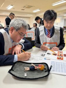 訓練では、災害などで多くの方が亡くなられた状況を想定し、歯科医師として身元確認の一